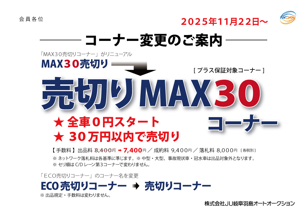 「MAX30売切り」→「売切り30MAX」としてリニューアル